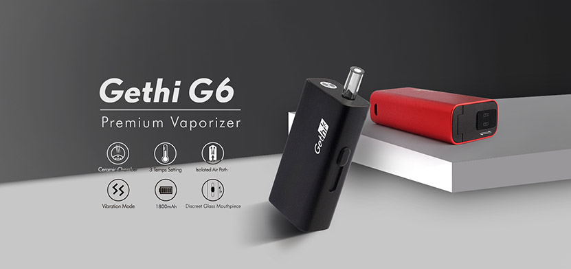 The Gethi G6 vape is a high-end dry herb vape with a 1800mAh battery capacity. It has three temperature settings (435°F/420°F/405°F) and can be set quickly and simply adjusted. It gives pure combustion-free vaping satisfaction because of the 100% high-grade ceramic dry herb heating chamber.