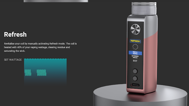 It has a 2500mAh built-in battery with USB-C charging, allowing for all-day battery life and dependable speedy charging. Coil+ and Refresh modes help lengthen coil life, eliminate residue buildup, and present a more vibrant vaping experience over an extended amount of time.