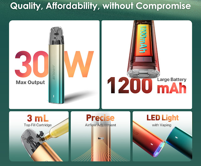 - Cartridge Included: Argus Top Fill Cartridge 0.7 Ω (3ml) *1